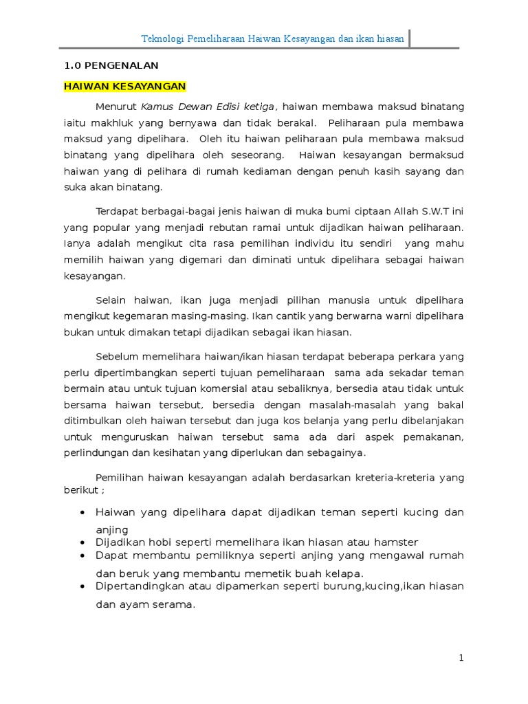 Aima Asyilah Binti Asim Haiwan Kesayangan Saya Karangan Sekolah